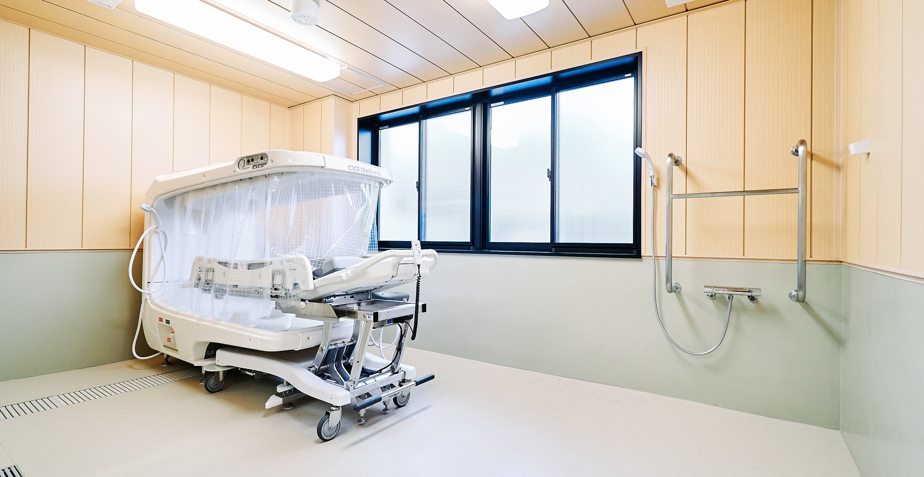 feature04ミストシャワーとドーム構造によるサウナ効果で、寝たままの状態でも⾝体をしっかりと温め、お湯に包まれるような感覚です。また水圧の負担を受けにくいため心臓や肺疾患のある方にはオススメです。このミスト浴を快適なリラックスした入浴時間を提供します。