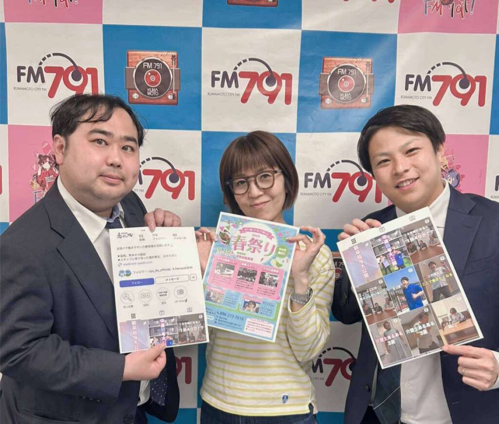 先日、熊本シティFM79.1「ロッキンレディオ」に出演し、メディケア癒やし京町台で開催された今年度初のイベント「春祭り」についてお話させていただきました。ラジオでもお話ししましたが、当日はたくさんの方にご来場いただき、またアユミさんには司会として登場していただきました!とてもにぎやかで楽しい一日となりました😊