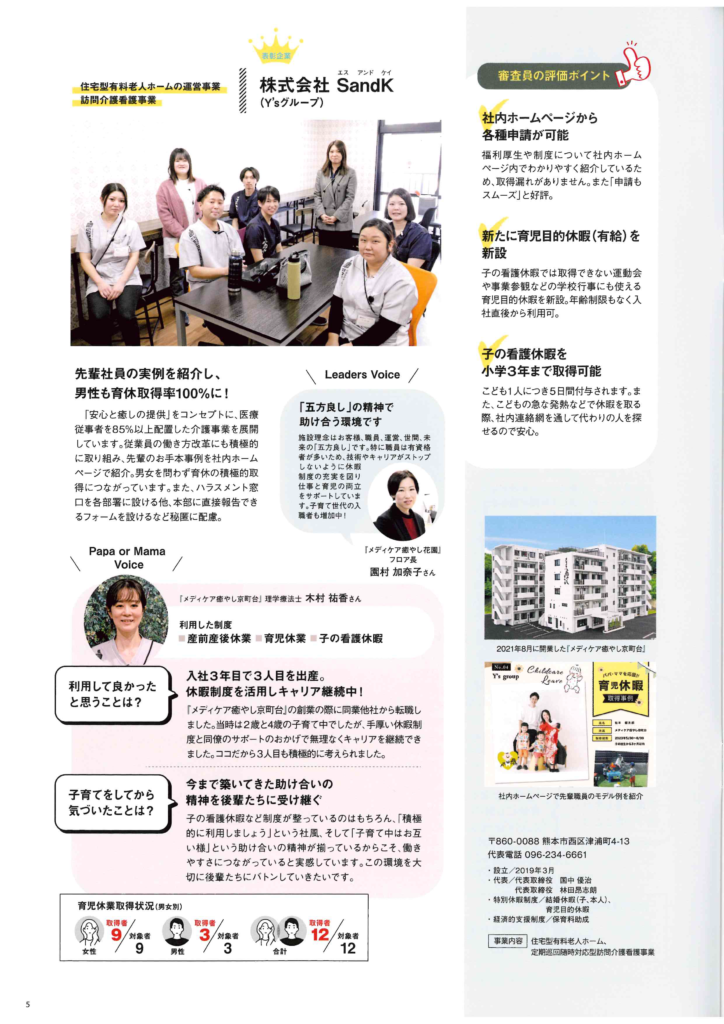 この度、弊社「メディケア癒やしDX」が、令和7年度3月発行の熊本市 こども政策課の冊子に、子育て支援優良企業として掲載されました!