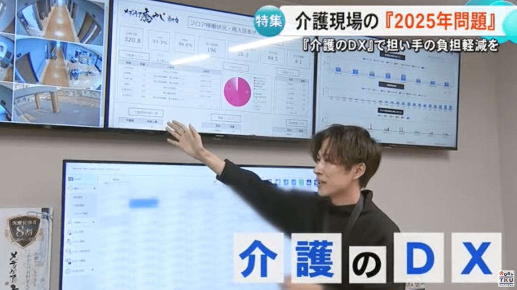 番組では、医療ケアのできる最新の住宅型老人ホームとしての取り組みや、DX化の最前線に立ち、利用者様の利益と業務効率化にどのように貢献しているかについて紹介されました。