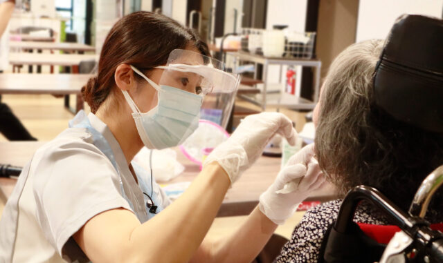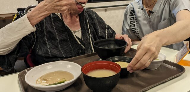 こちらのご利用者はパーキンソン病の悪化により嚥下機能が低下。入院中の検査では「口からの食事は難しい」と診断され、胃ろうを造設した状態での入居でした。今回はご本人の希望である「少しでもいいので、口から食べたい」という想いに応じたアプローチを行いました。